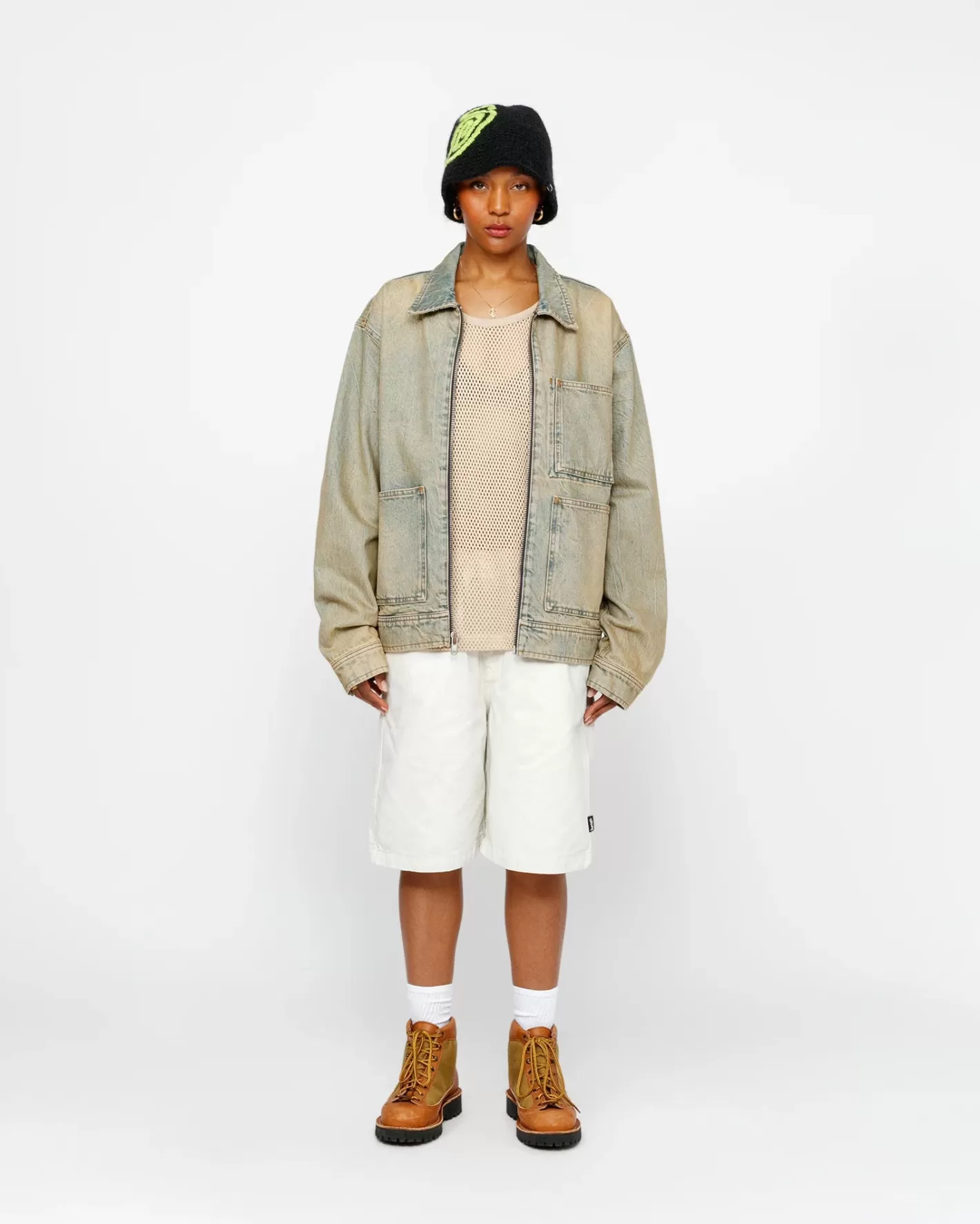 Relaxed beach short in 9.7oz brushed cotton twill. Stüssy stock label stitched at the side seam.