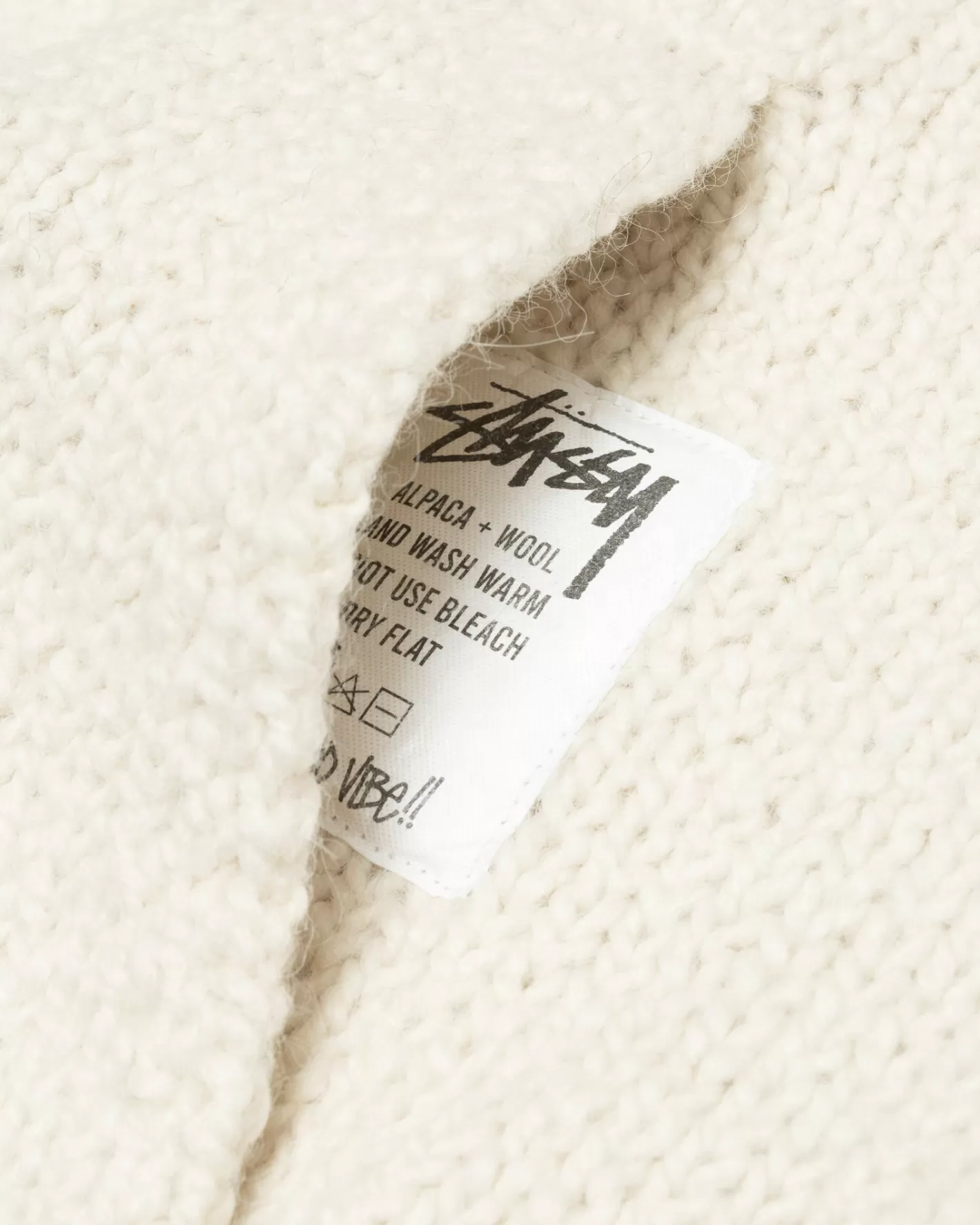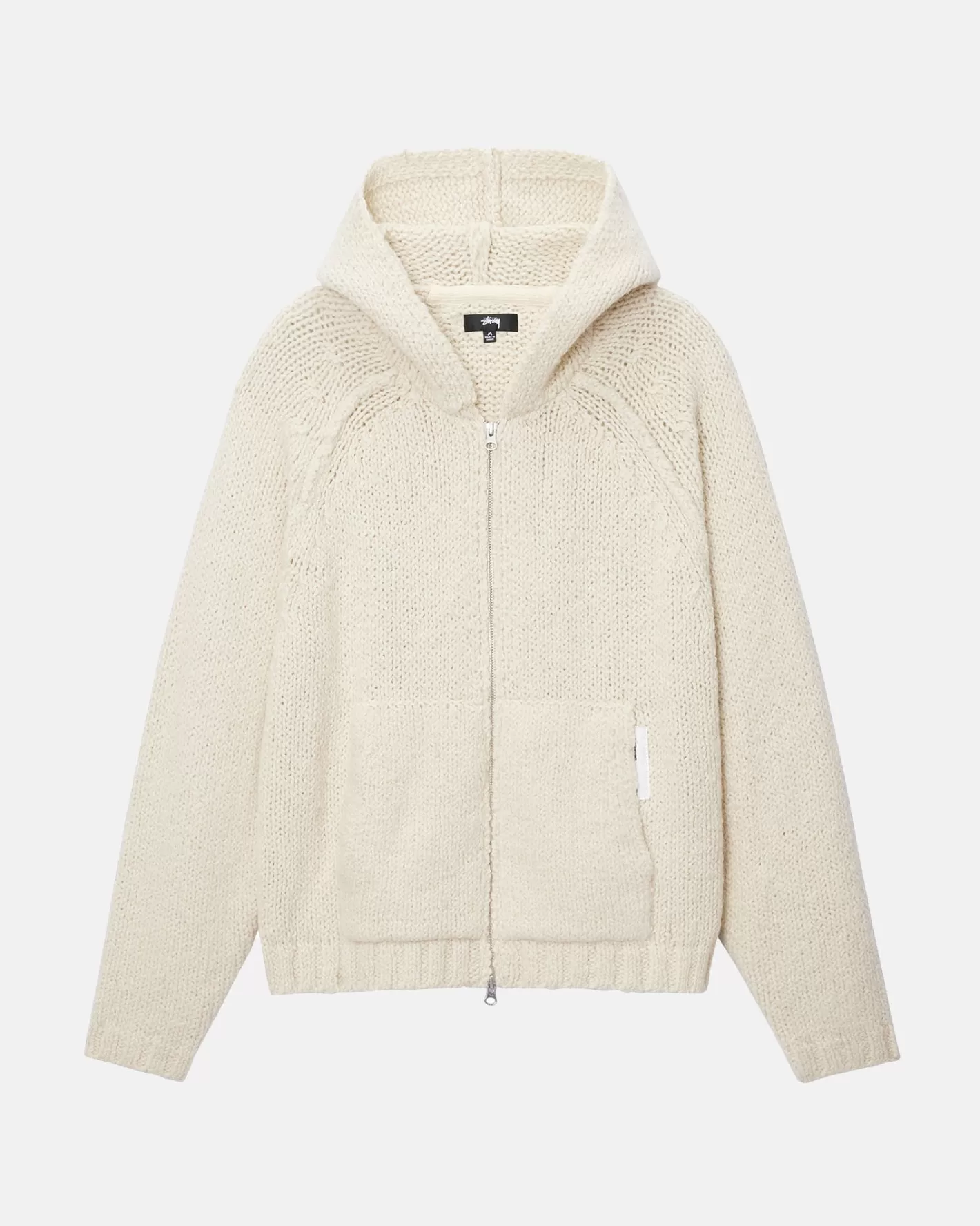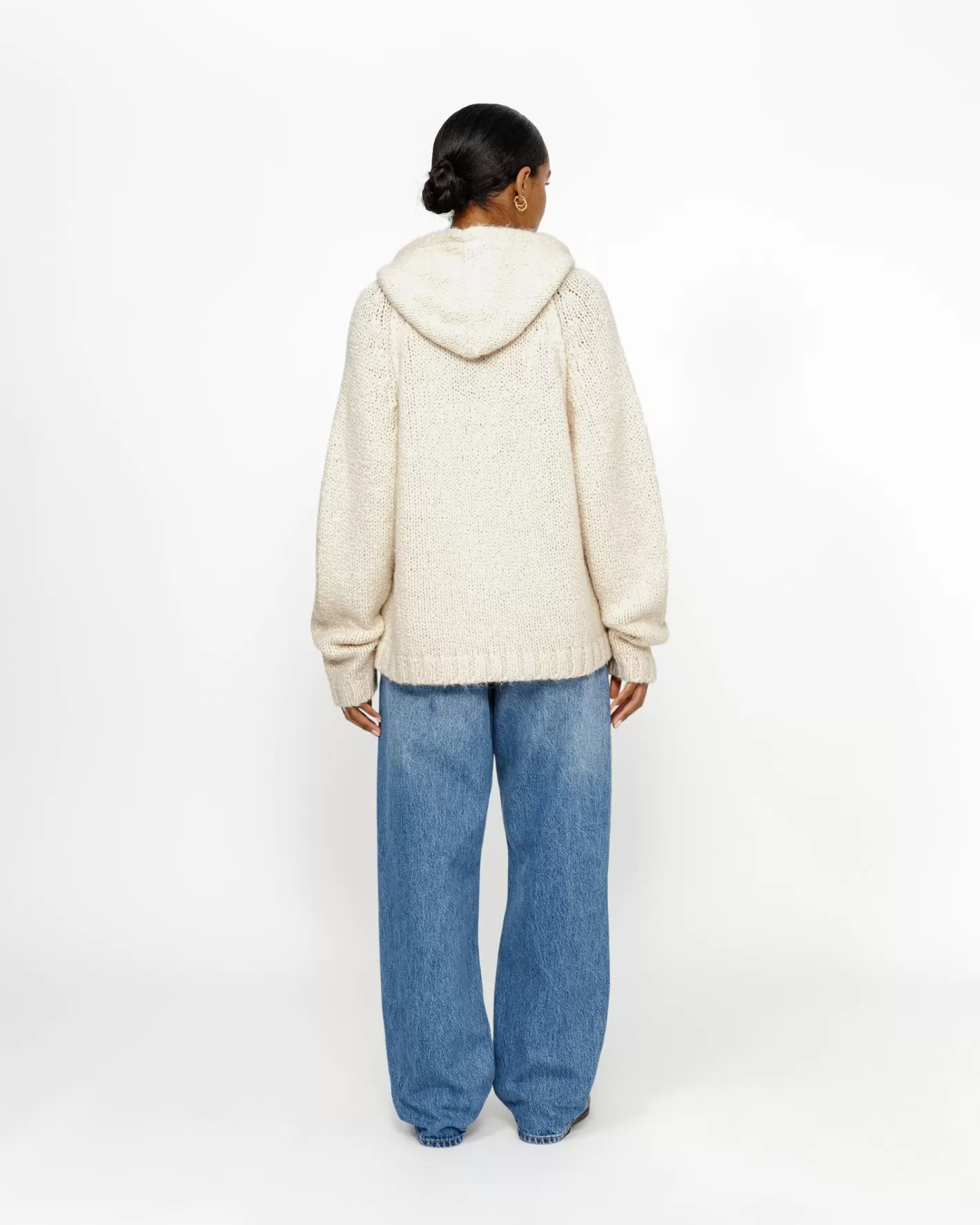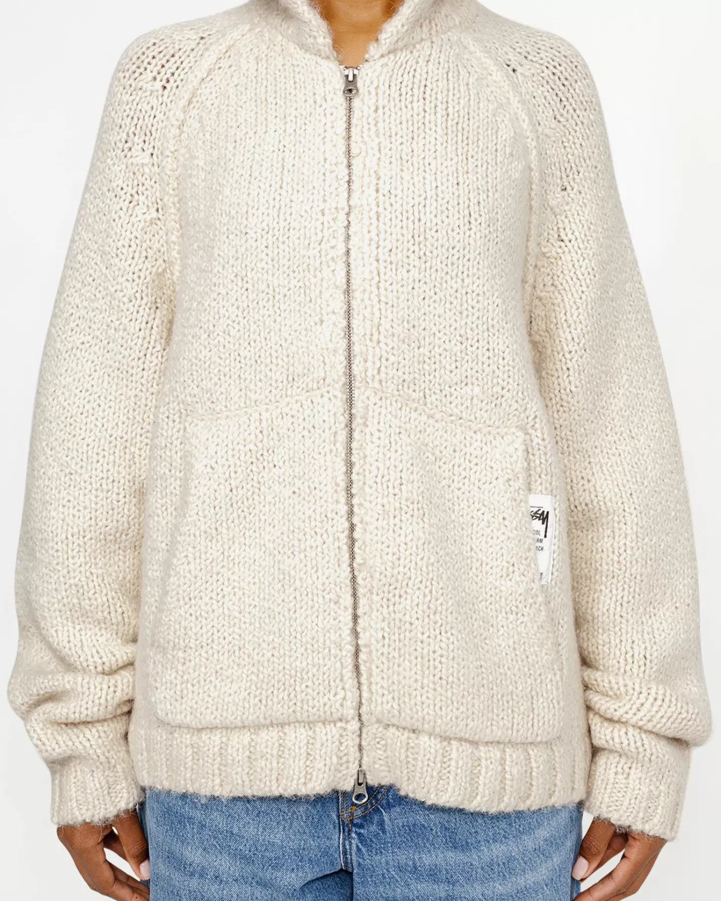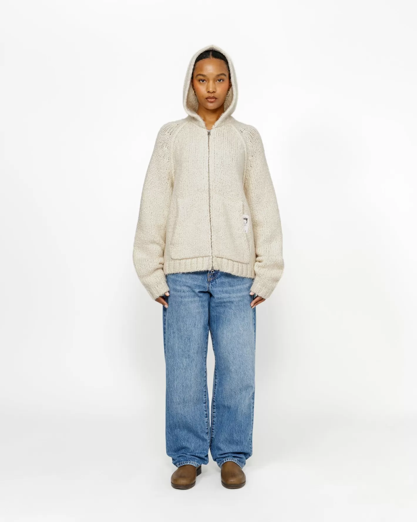 Relaxed hooded sweater with a two-way zip in a chunky alpaca wool knit. Stüssy label inside the left pocket.