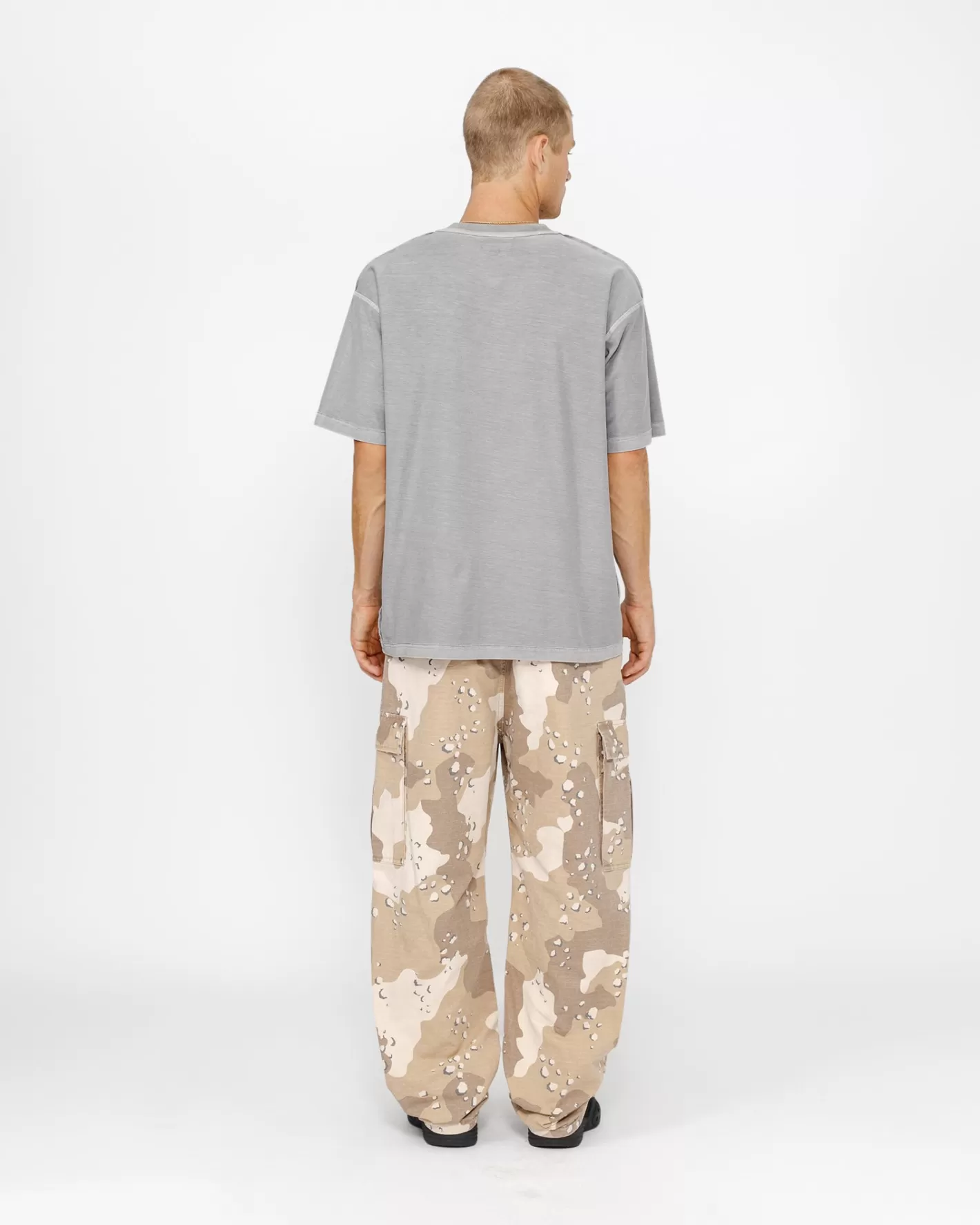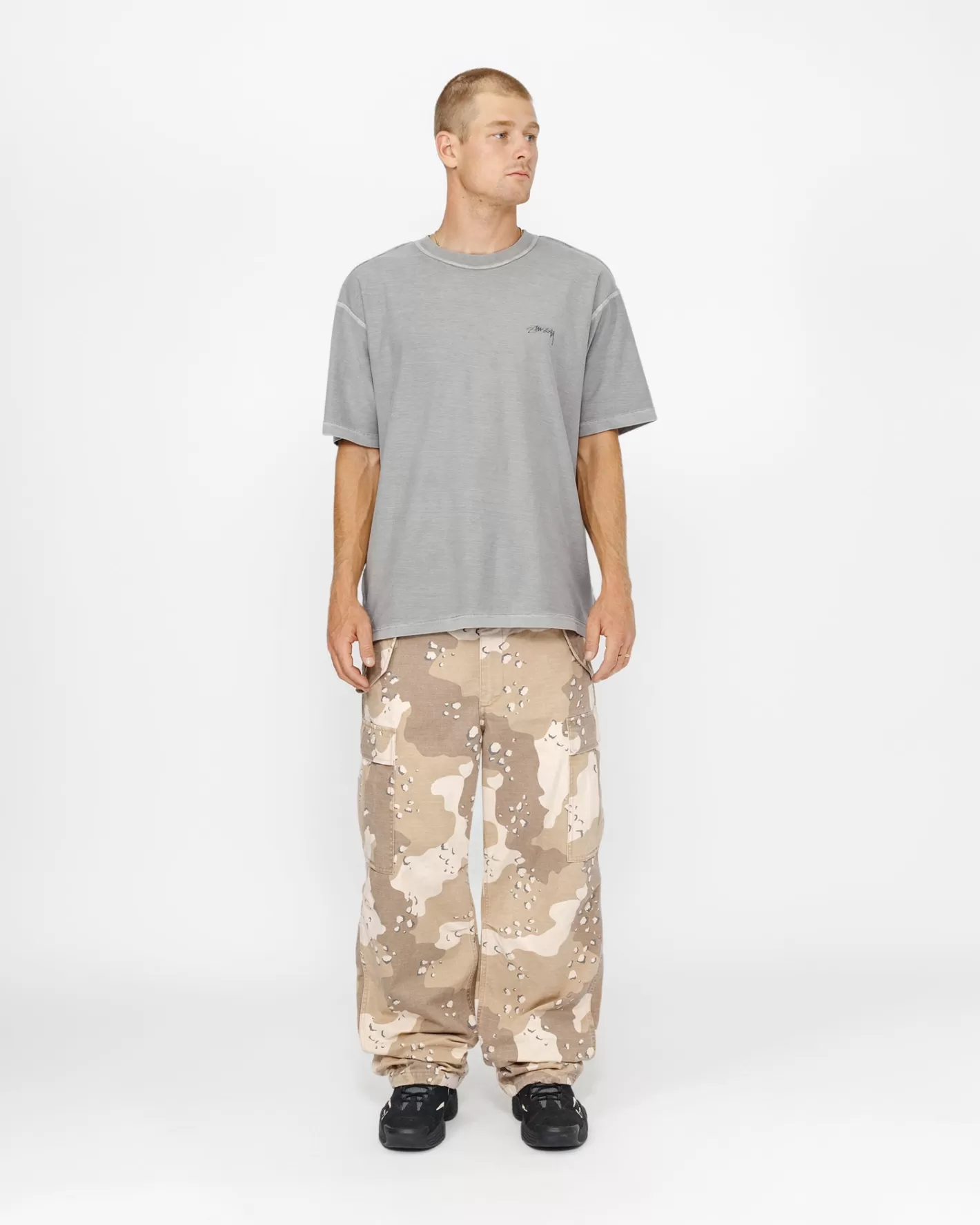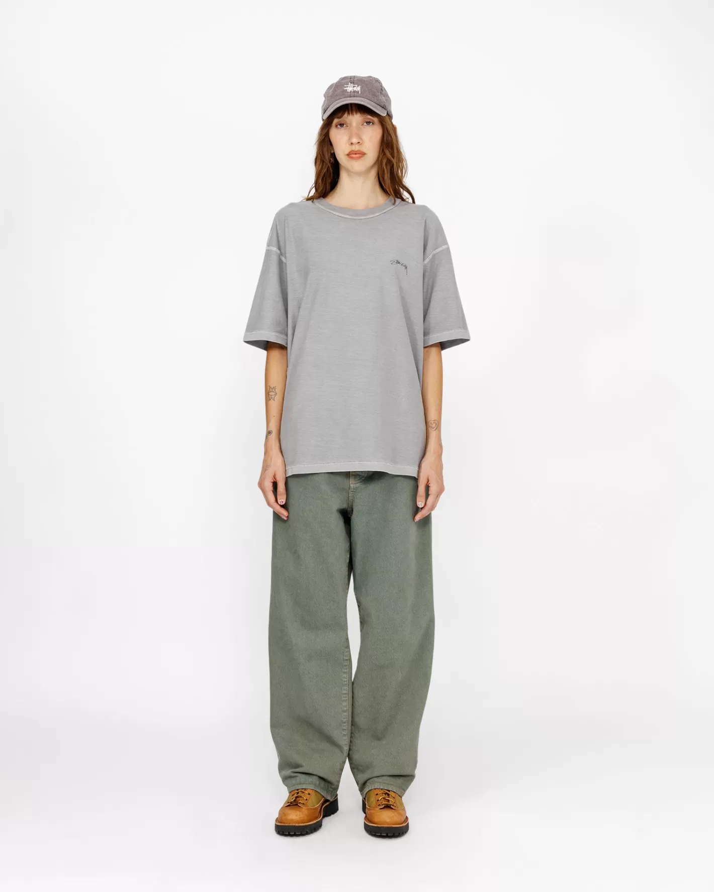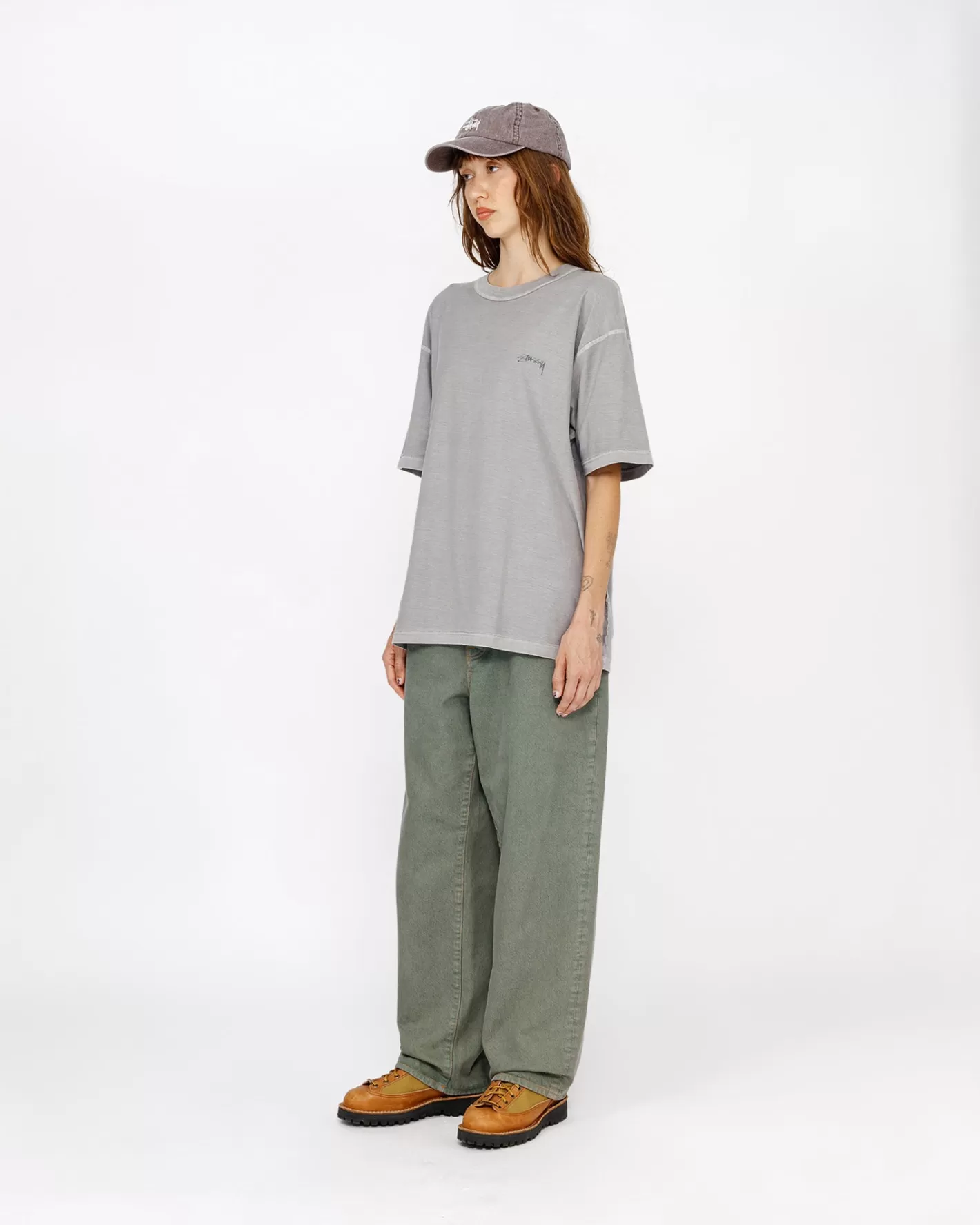 Relaxed fit tee in pigment dyed cotton with inside-out seam detailing. Stüssy smooth stock logo printed at the left che…