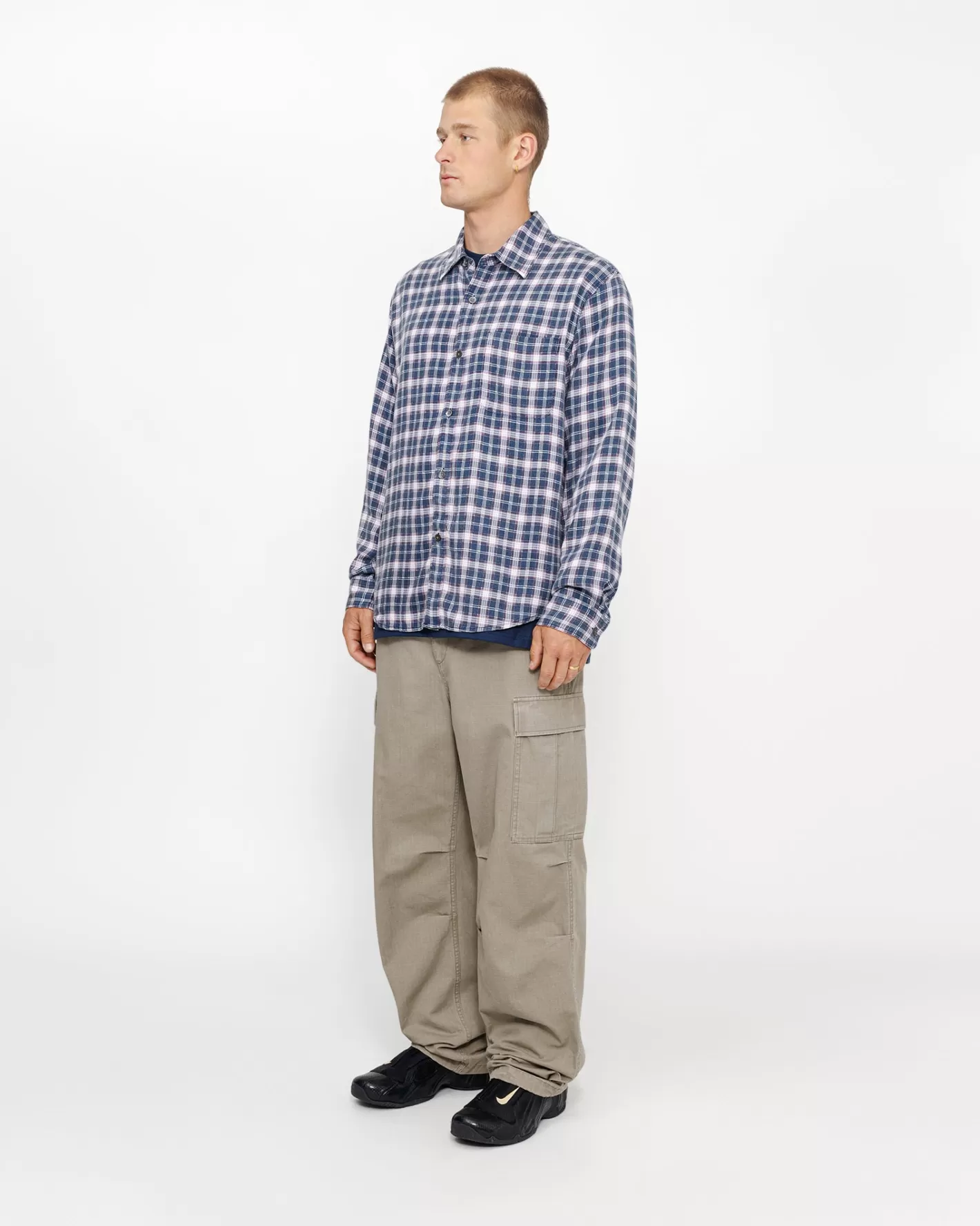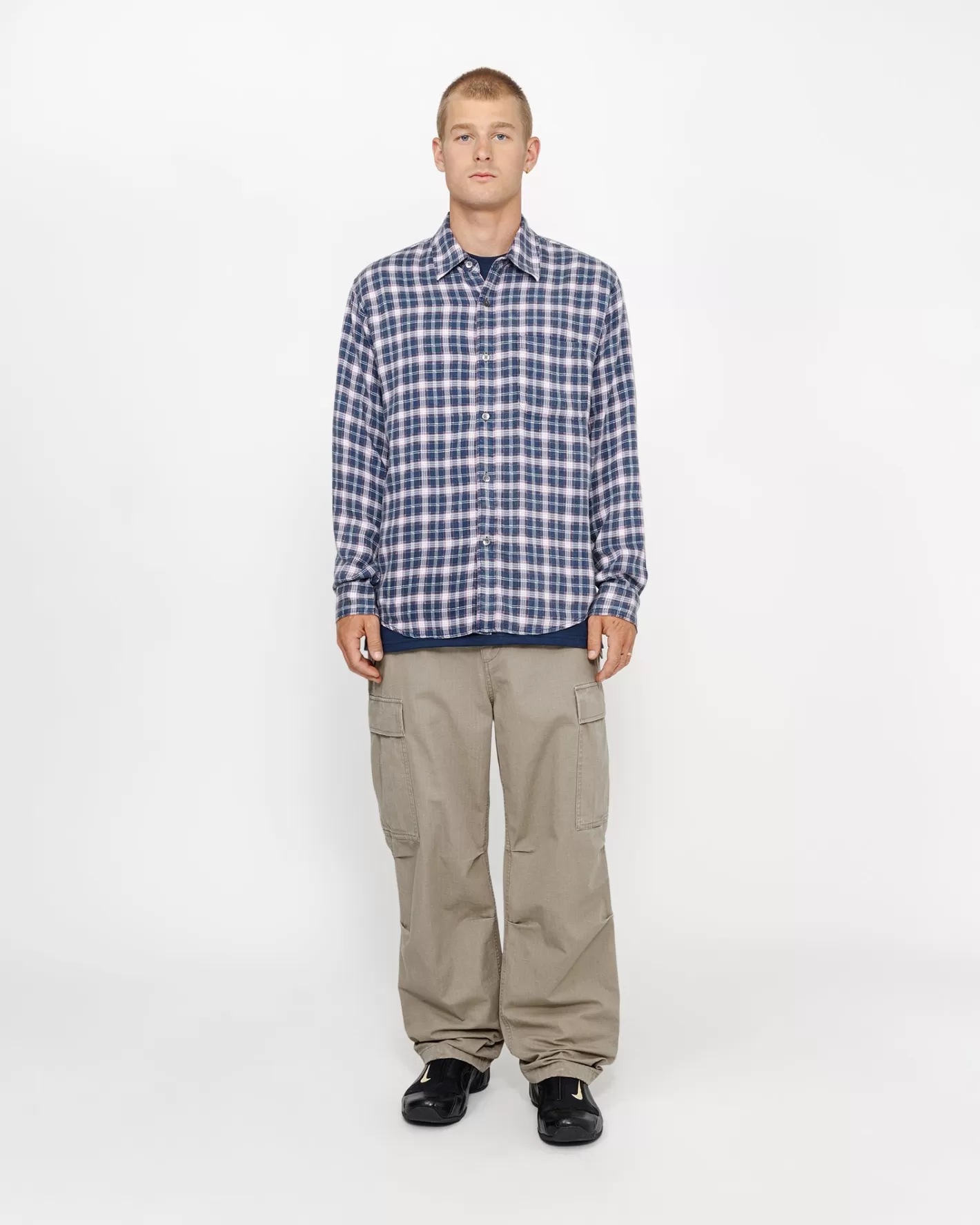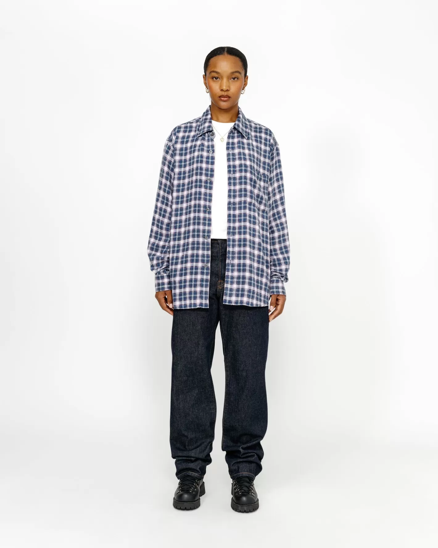 Relaxed fit plaid twill shirt. Features a single patch pocket and Stüssy stock label stitched at the side.