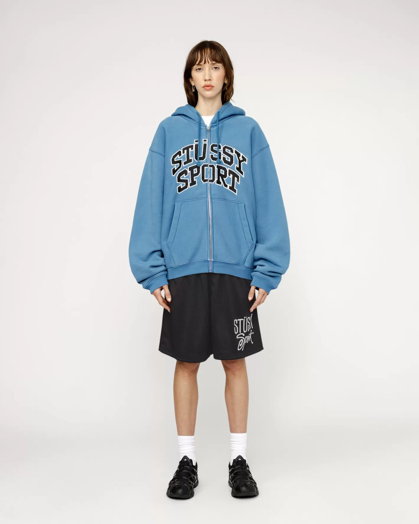 Relaxed fit mesh short featuring an internal drawcord and elastic waist. Stüssy sport logo printed on the left leg.